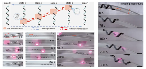 基于这一材料突破,团队设计并制造出具有螺旋结构的智能软体机器人,具有智能抓取功能、多模态运动能力、环境适应性等技术亮点。这一研究成果为二维纳米材料MXene的制备与实际应用开辟了新途径,尤其是在柔性软体机器人领域具有重要价值。
